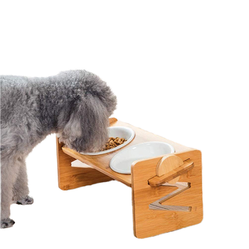 Einstellbarer umwelt freundlicher Bambus-Tierfutter automat Solid Style Tragbarer Hunde-/Katzen schalen halter Schutz futter für die Halswirbel säule