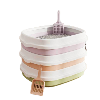 Caja de arena para gatos de plástico de 6 colores con función de fácil limpieza, inodoro semicerrado para perros con cuchara